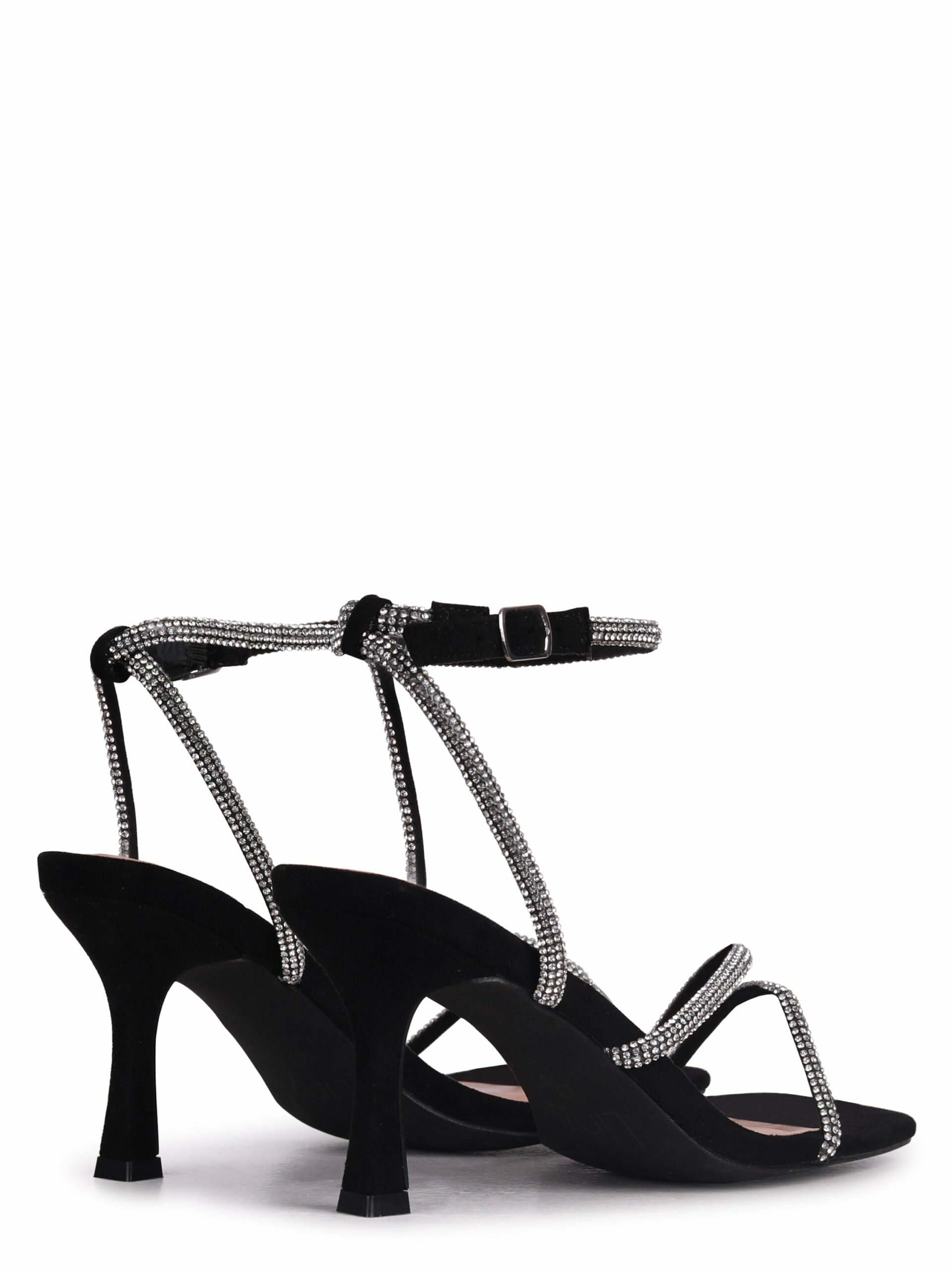 Our Linzi wide fit range is designed to let you show off your style in supreme comfort. Crafted from a soft faux suede, these elegant heeled sandals feature a wrap-around diamante ankle strap and an 8 cm heel.