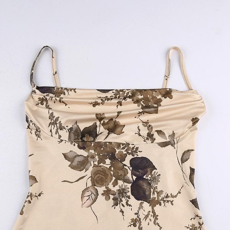 Be the first to review “Sleeveless backless cowl neck flower pattern cami dress”